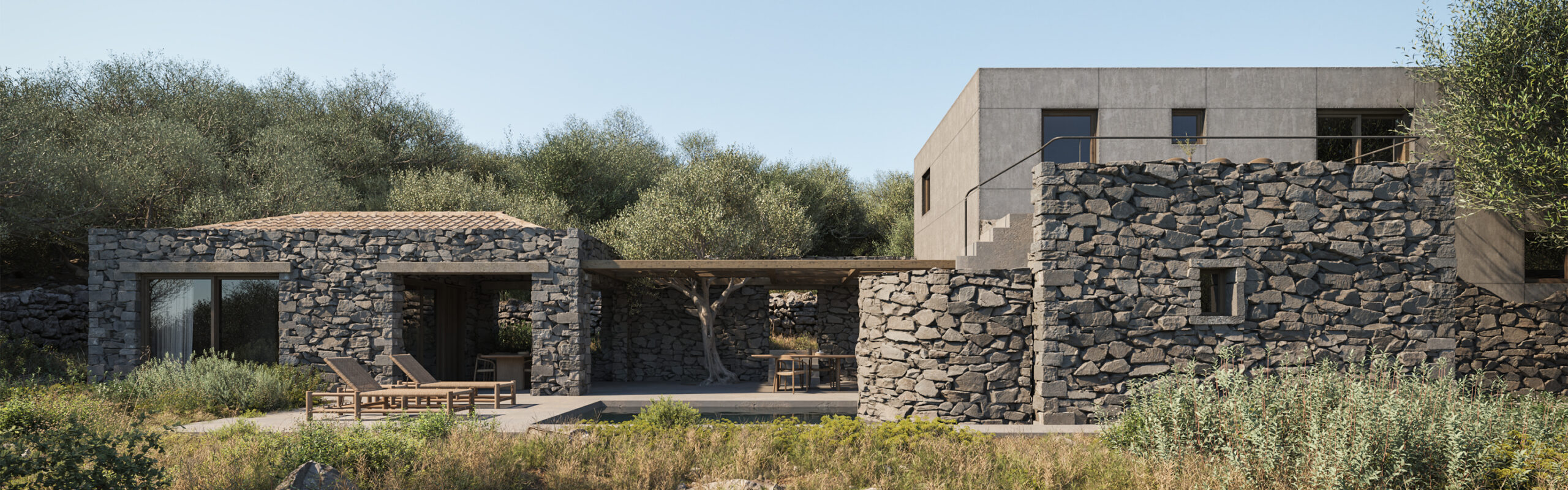 The “VIEW HOUSE” emerges from Ioannina’s urban cityscape as a concrete volume. Located in a suburban area of the city next to a small forest, this family house embodies our studio’s principal of minimalism, where transparency, mass, and nature are in a quiet dialogue.